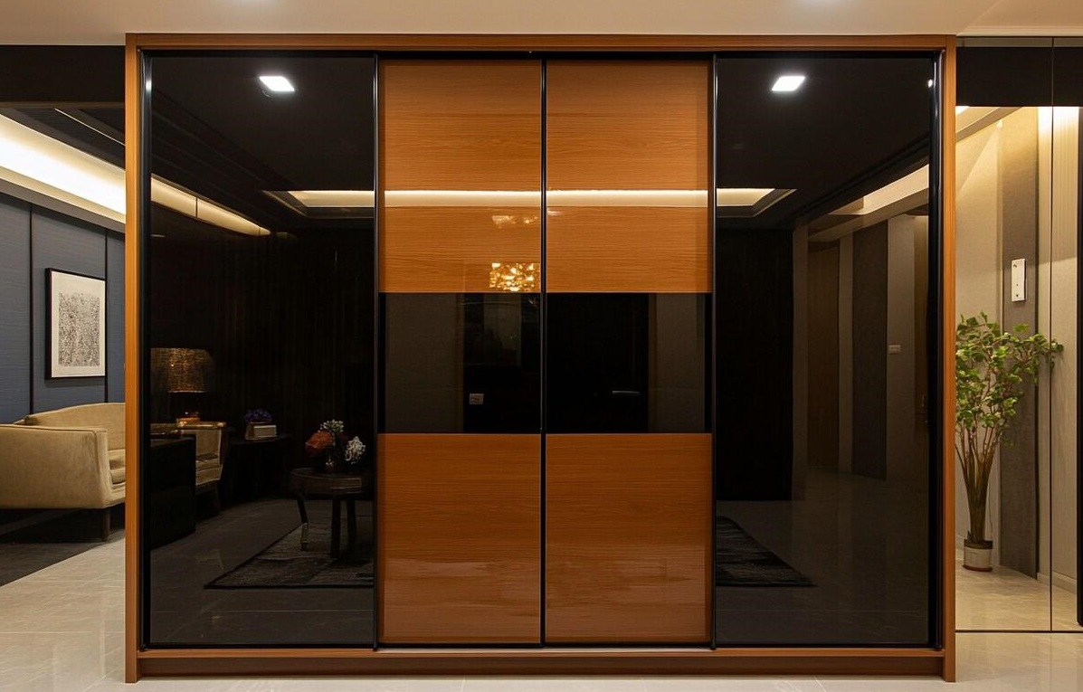 Glass Sliding Wardrobe,With Black & Wood Finishing