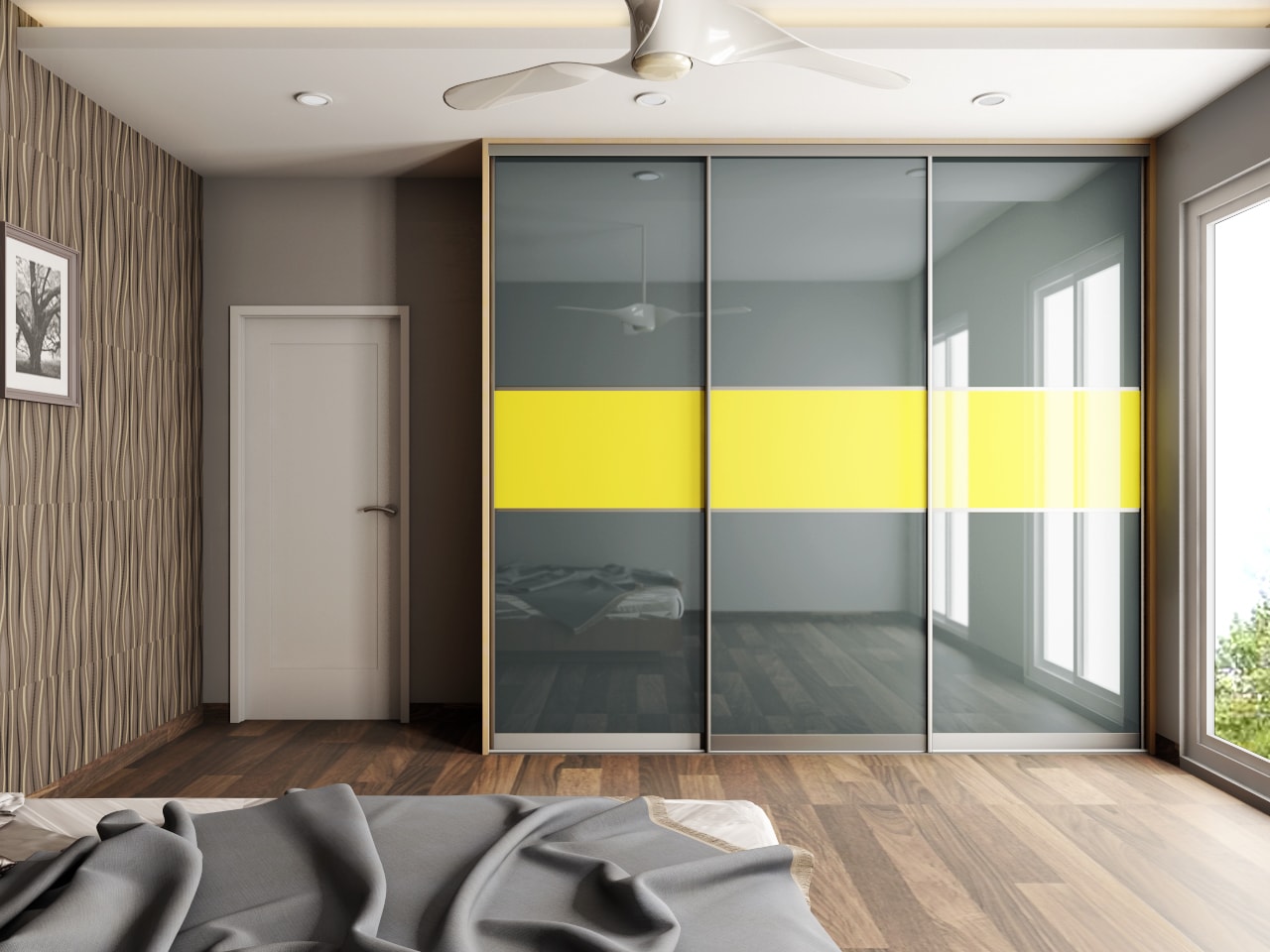 Grey & Yellow Glass sliding Wardrobe
