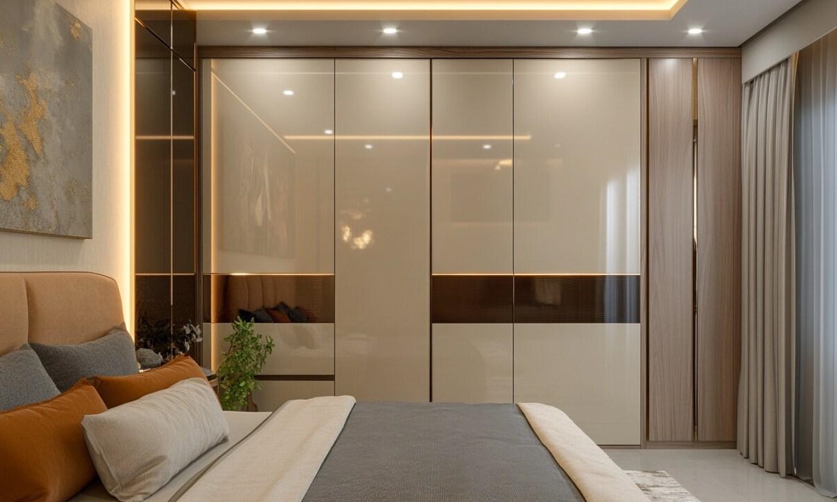 Lacked Glossy Glass Sliding Wardrobe